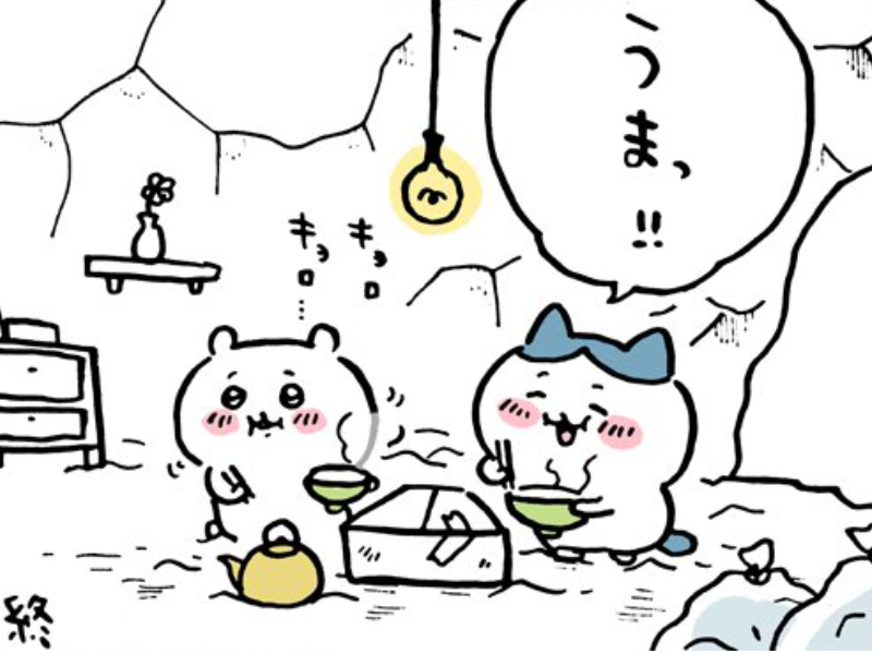 また、ふかふかの布団やテーブル、フライ返しや冷蔵庫と思われる物などが確認できることから、ちいかわは家具・家電も一式、持っていると推測することができます。