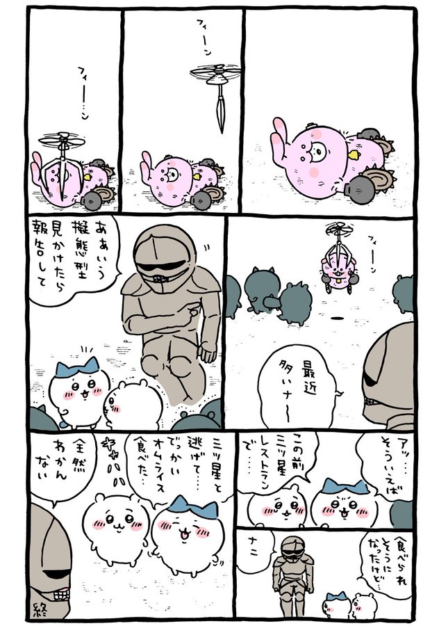 最終的に複数体の武器を持っていたちいかわ族によって討伐されました。