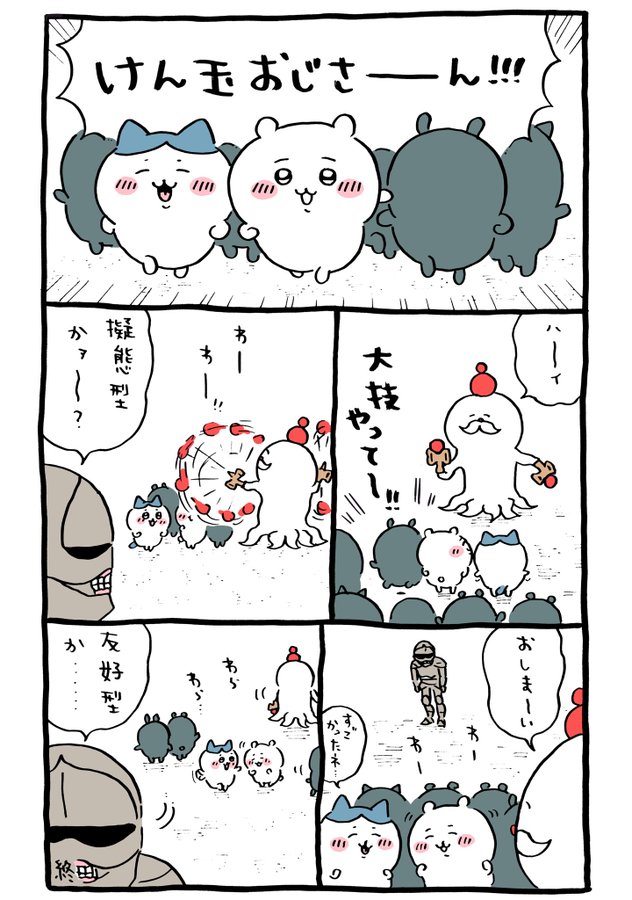 ちいかわ達が警戒することなく、けん玉おじさんに寄っていってたのでおそらく定期的にちいかわ達にけん玉を披露しているのではないかと考えられます。