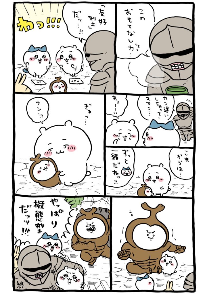 鎧さんに「擬態型かァ〜?」と疑われますが、特にちいかわ達を襲わず友好型でした。
