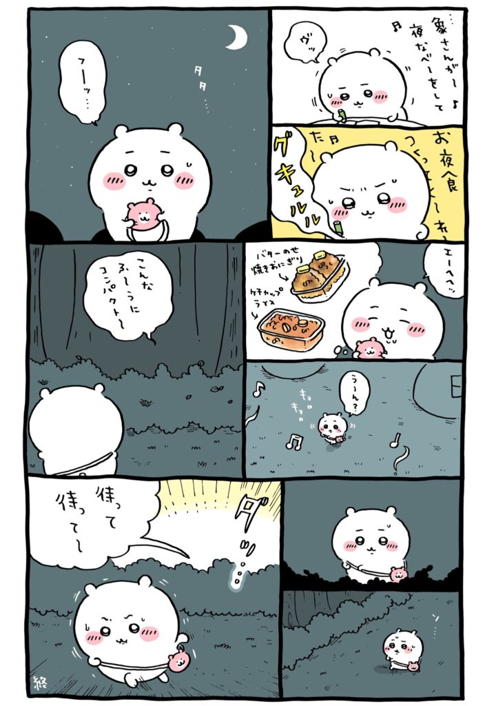 洞窟で見つけた後、ちいかわにくっついてきて一緒に生活するようになりました。