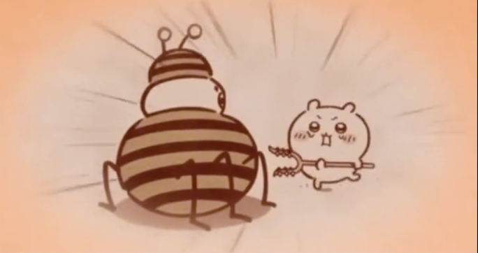 ちいかわが棍棒を持っててんとう虫柄のギチギチと対峙していることしかわかりませんが、その後さすまたを購入していること、小さなギチギチであったことから討伐に成功したと考えられます。