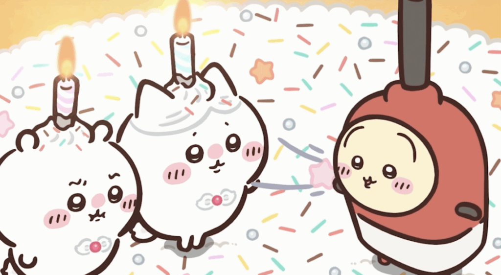 まず、ちいかわとハチワレにロウソクを勢いよく投げるのも面白いですし、その後の火を消すまでのテンポ感が良くてツボです。